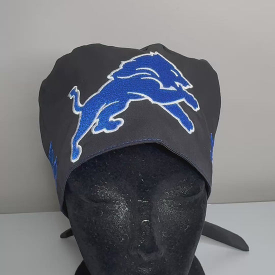 Detroit Lions Satin Lined Scrub Cap- Embroidered (Unisex) Tieback Cap
